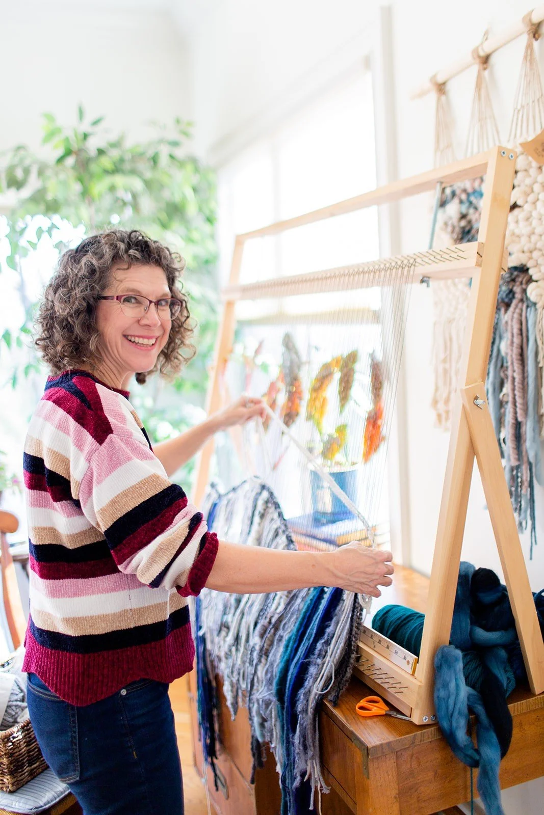 I believe that beauty is one of the ways God tells of His love for us, and I love getting to be part of that message as I weave, creating beauty from various natural and synthetic fibers.
